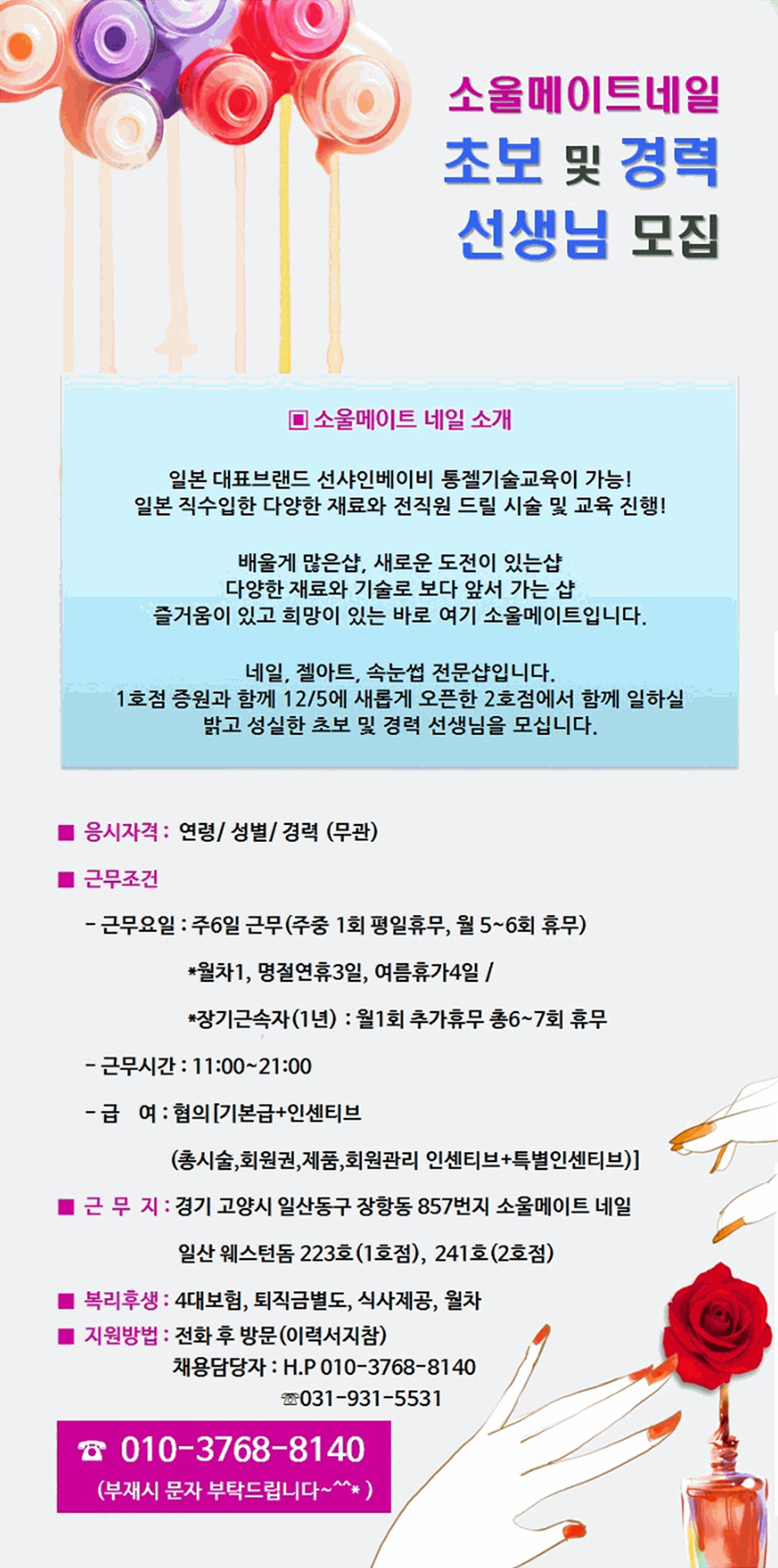 업종 네일아티스트(경력), 네일아티스트(신입), 속눈썹아티스트