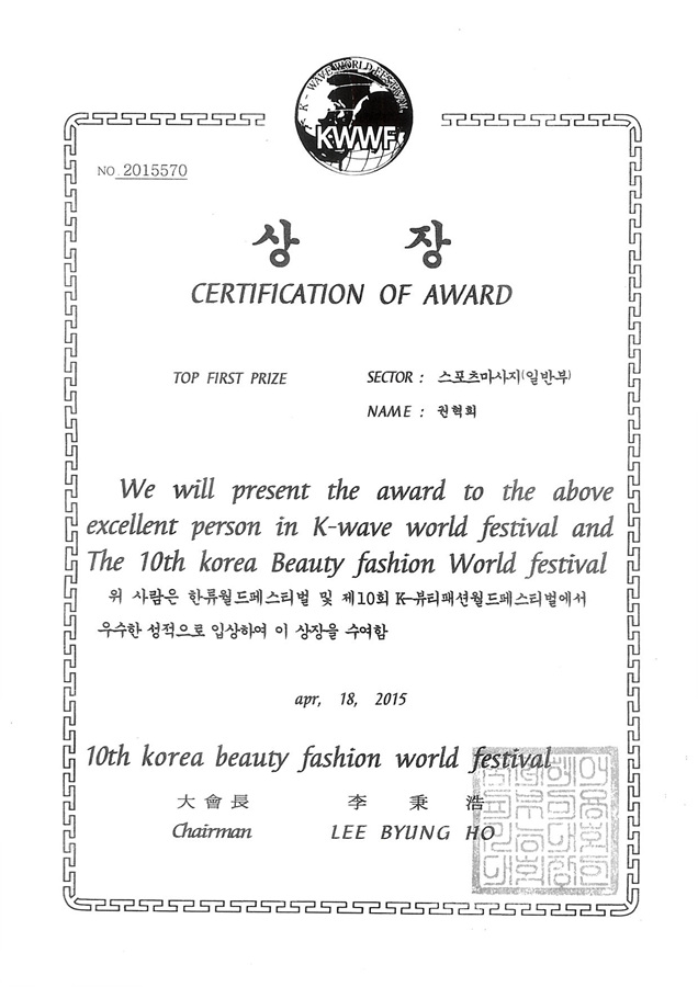 월드 금상 수상 스포츠마사지 부분 문호진님