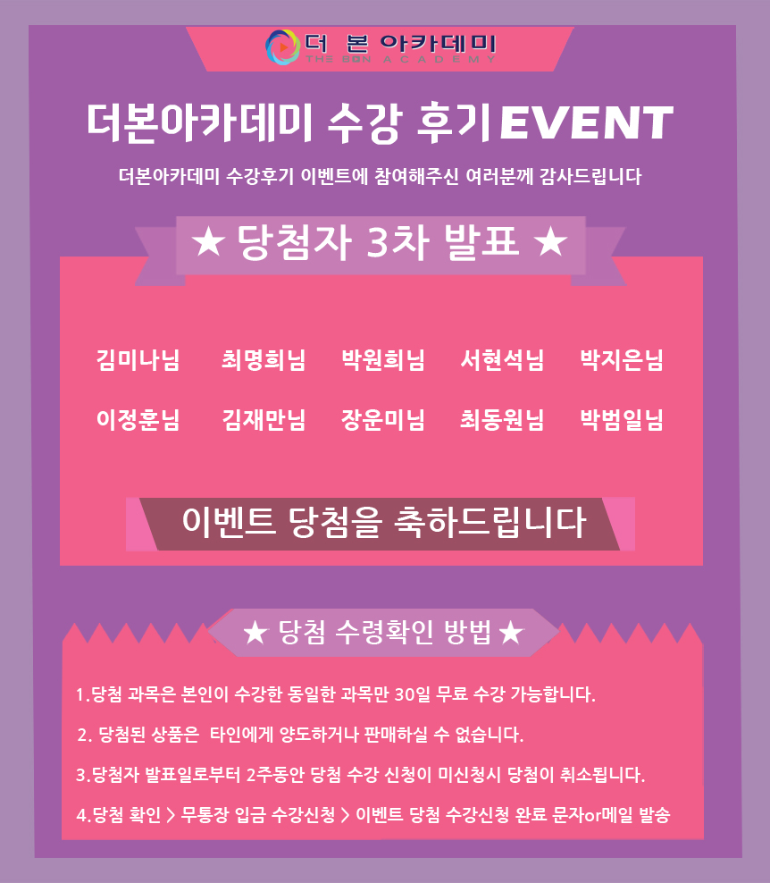 ★ 더본아카데미 수강후기 이벤트 당첨자 3차발표 ★