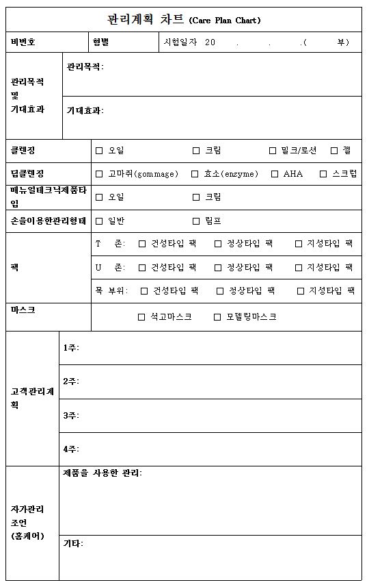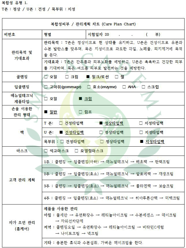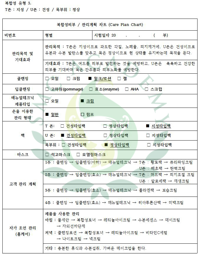 < 복합성 피부3. 관리계획 차트 샘플 >