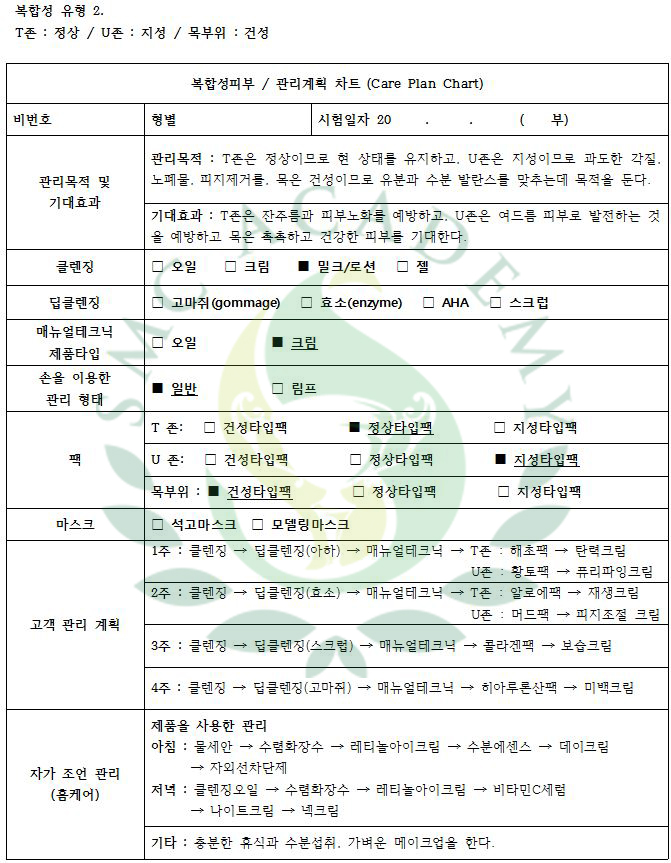 < 복합성 피부2. 관리계획 차트 샘플 >